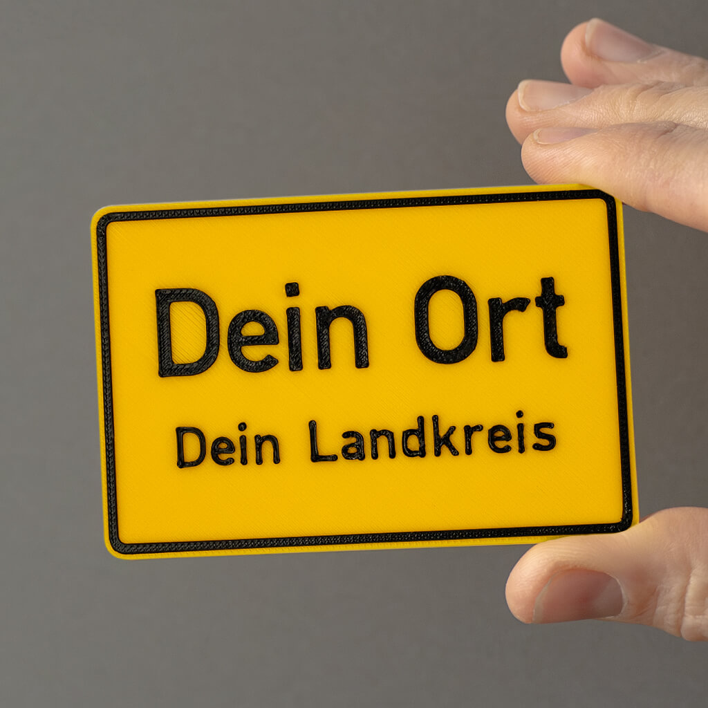 Unsere Ortsschilder werden aus hochwertigen Materialien im 3D-Druckverfahren hergestellt. Bitte beachte, dass aufgrund dieses Verfahrens leichte Variationen im Aussehen auftreten können. Jedes Schild ist somit ein Unikat und zeichnet sich durch seine besondere Qualität und Detailgenauigkeit aus.